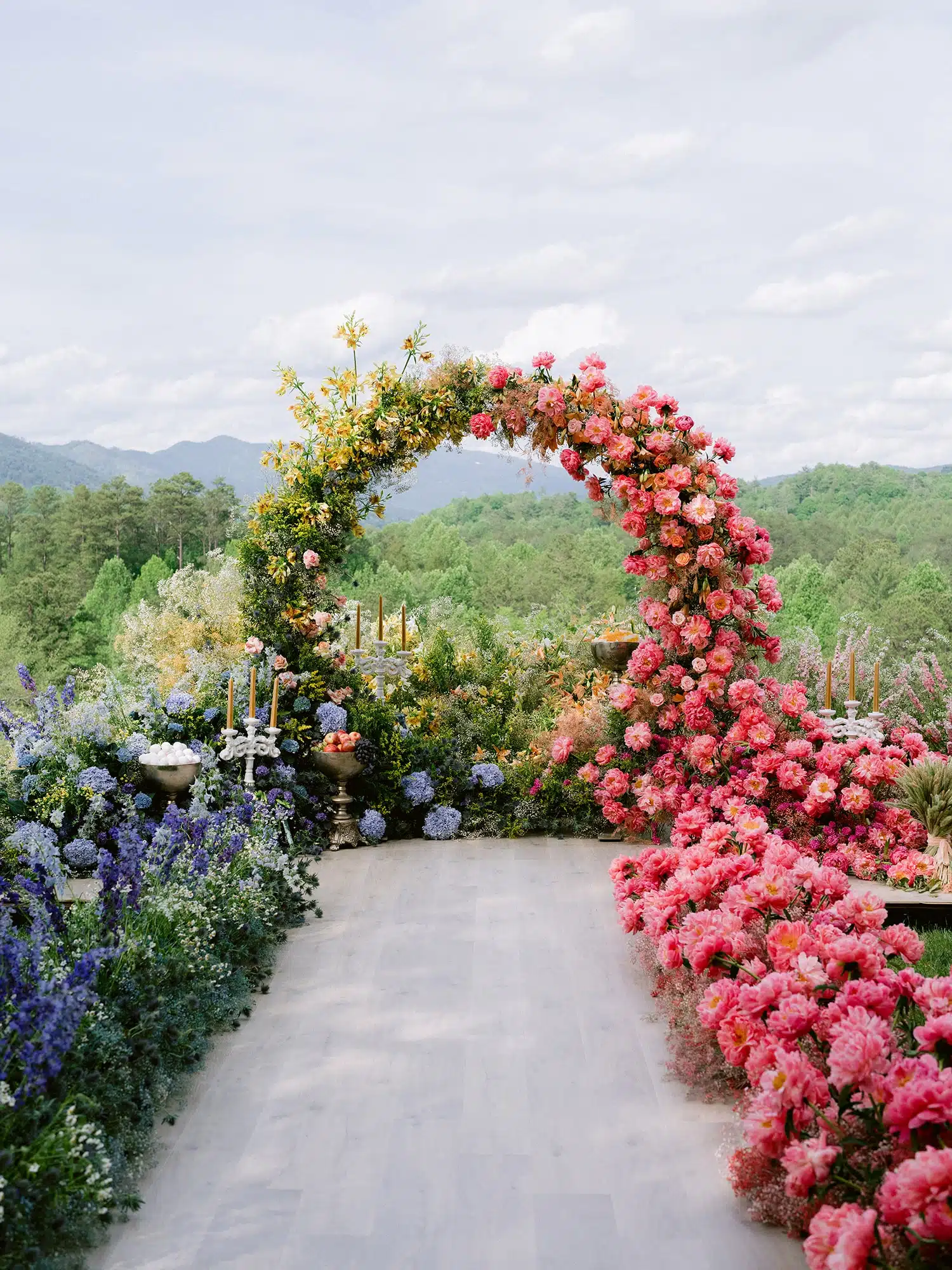 Val and Caleb wed on the hilltop at Blackberry Farm, where the talents of Bustle Events and Tulipina created the most vivid and rich aisleway!